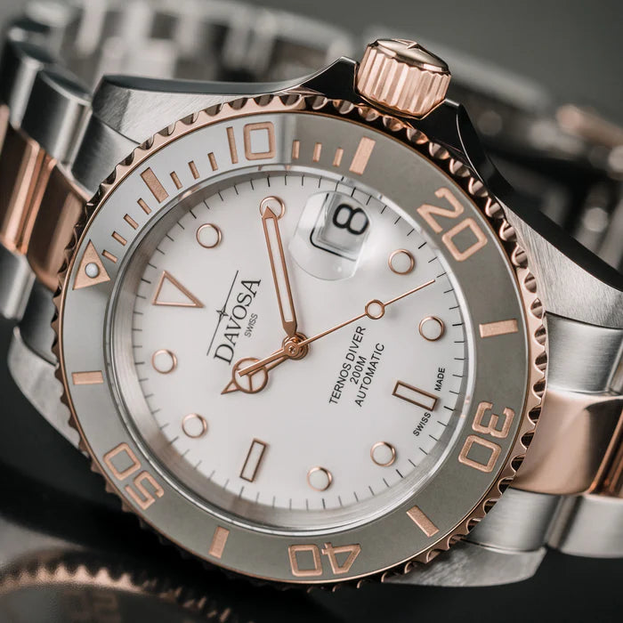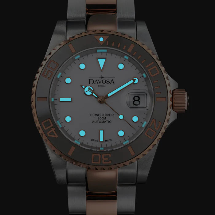 Ternos Ceramic Automatic Swiss-Made White Rose Gold Diving Watch 16155563