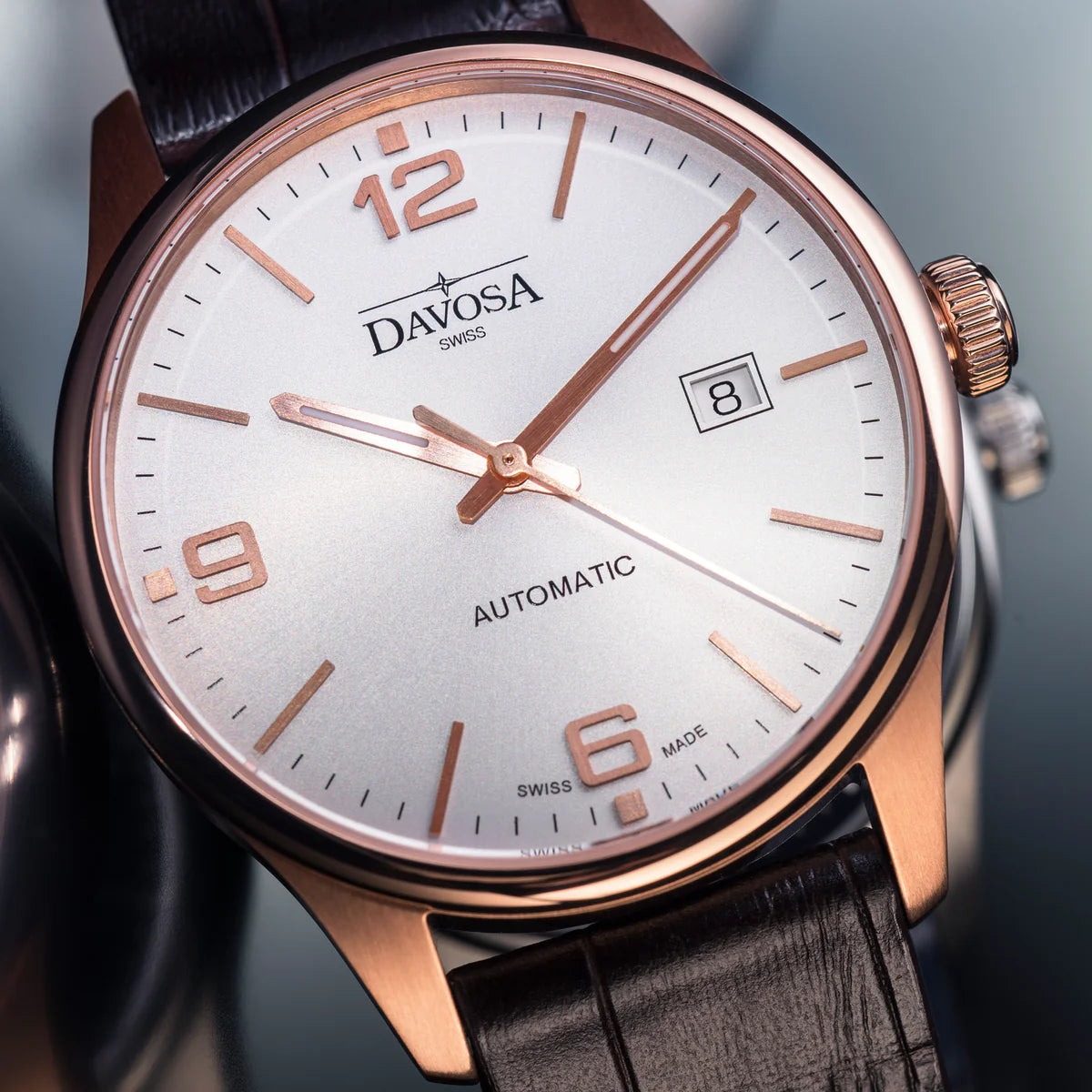 We all know that a true gentleman is always suitably dressed on every occasion. The DAVOSA Gentleman makes this child’s play – with a single watch, thanks to a quick strap changing system. Gentle pressure on an almost invisible telescopic pin releases the strap from the case without the need for an additional tool. This allows the Gentleman Automatic to be adapted to another occasion in a matter of seconds, instead of looking out of place after a change of dress. An additional strap comes with the wristwatch.